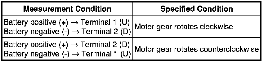 (1) Check that the motor operates smoothly when the battery voltage is applied to each terminal of the connector.