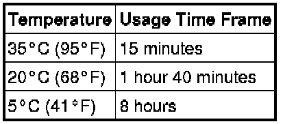 After cutting off the tip, use all adhesive within the time written in the table below.