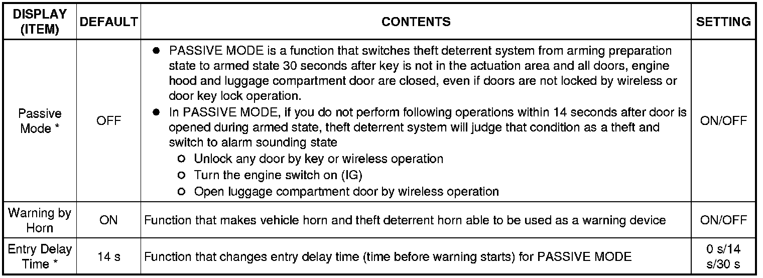 THEFT DETERRENT: THEFT DETERRENT SYSTEM: CUSTOMIZE PARAMETERS