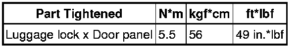 SERVICE SPECIFICATIONS: DOOR LOCK: TORQUE SPECIFICATIONS