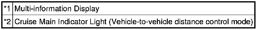* The vehicle-to-vehicle distance control mode is always selected when starting up the dynamic radar cruise control system (Cruise main indicator light and RADAR READY indicator comes on).