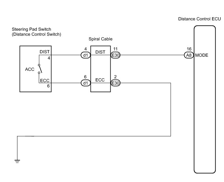 NG -- REPAIR OR REPLACE HARNESS OR CONNECTOR (SPIRAL CABLE - DISTANCE CONTROL ECU)
