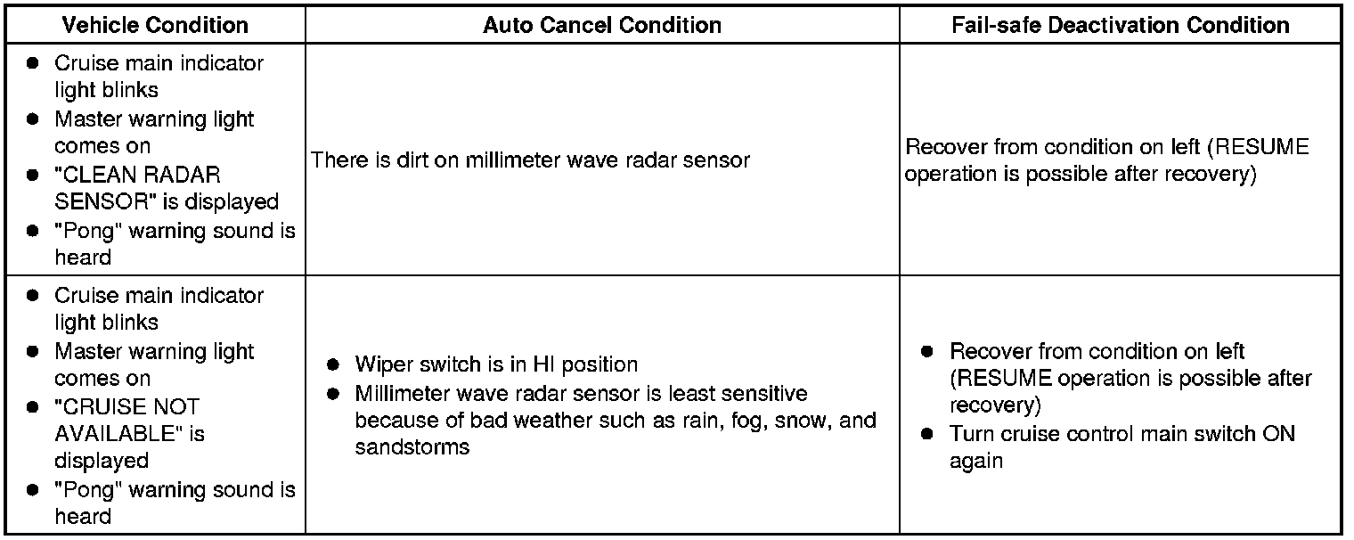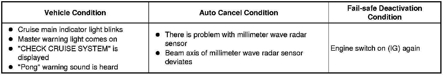 CRUISE CONTROL: DYNAMIC RADAR CRUISE CONTROL SYSTEM: FAIL-SAFE CHART