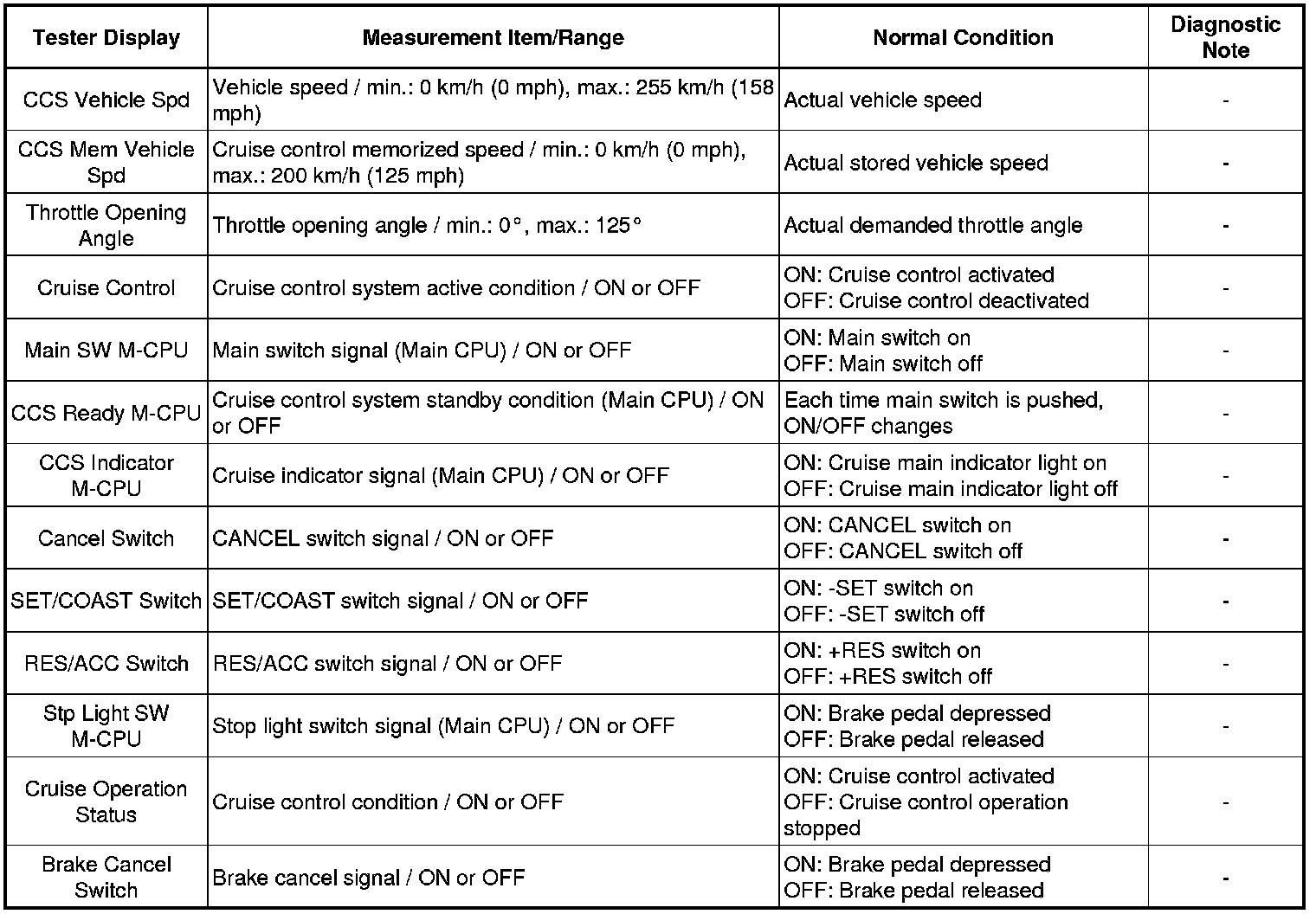 CRUISE CONTROL: CRUISE CONTROL SYSTEM: DATA LIST / ACTIVE TEST