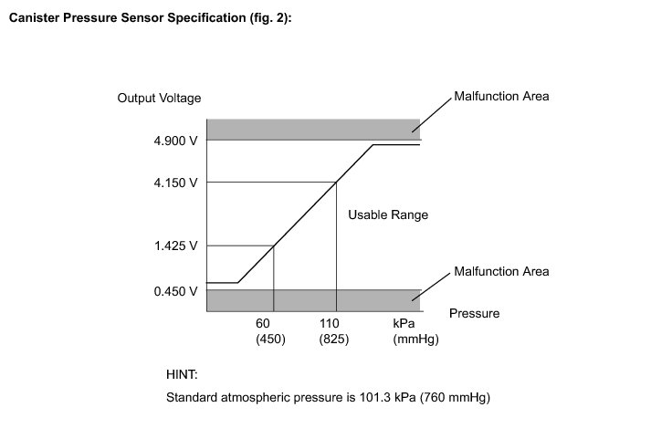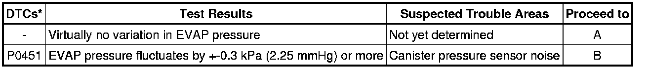 (b) Check the EVAP pressure again when it has stabilized. This pressure is the reference pressure (Step "B").