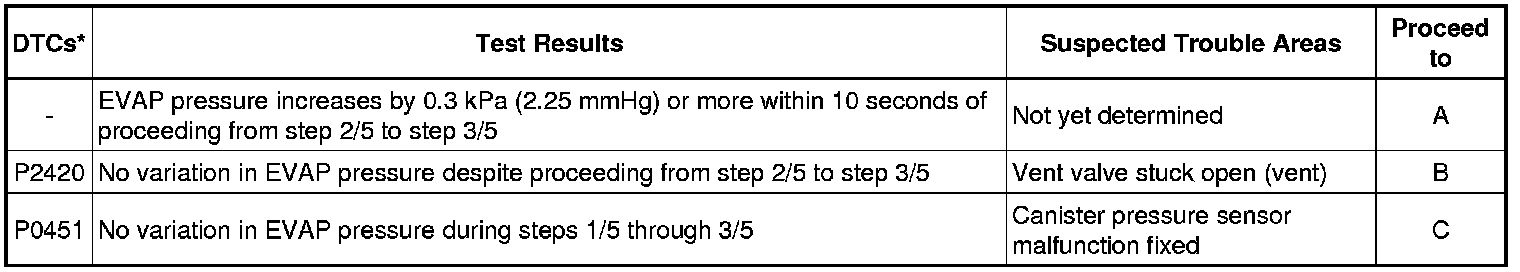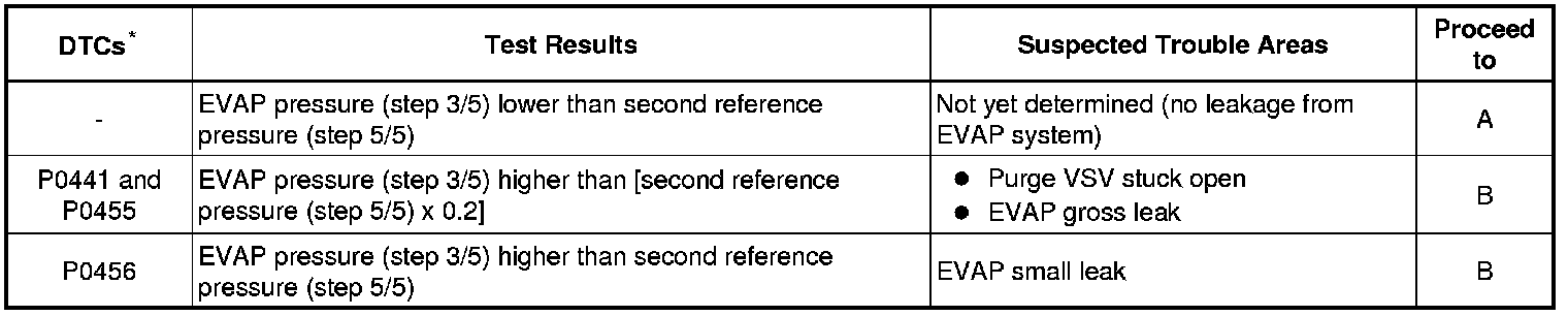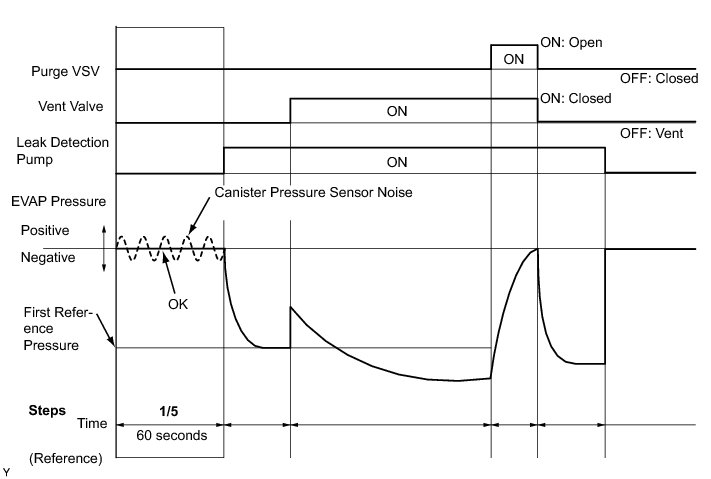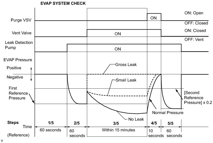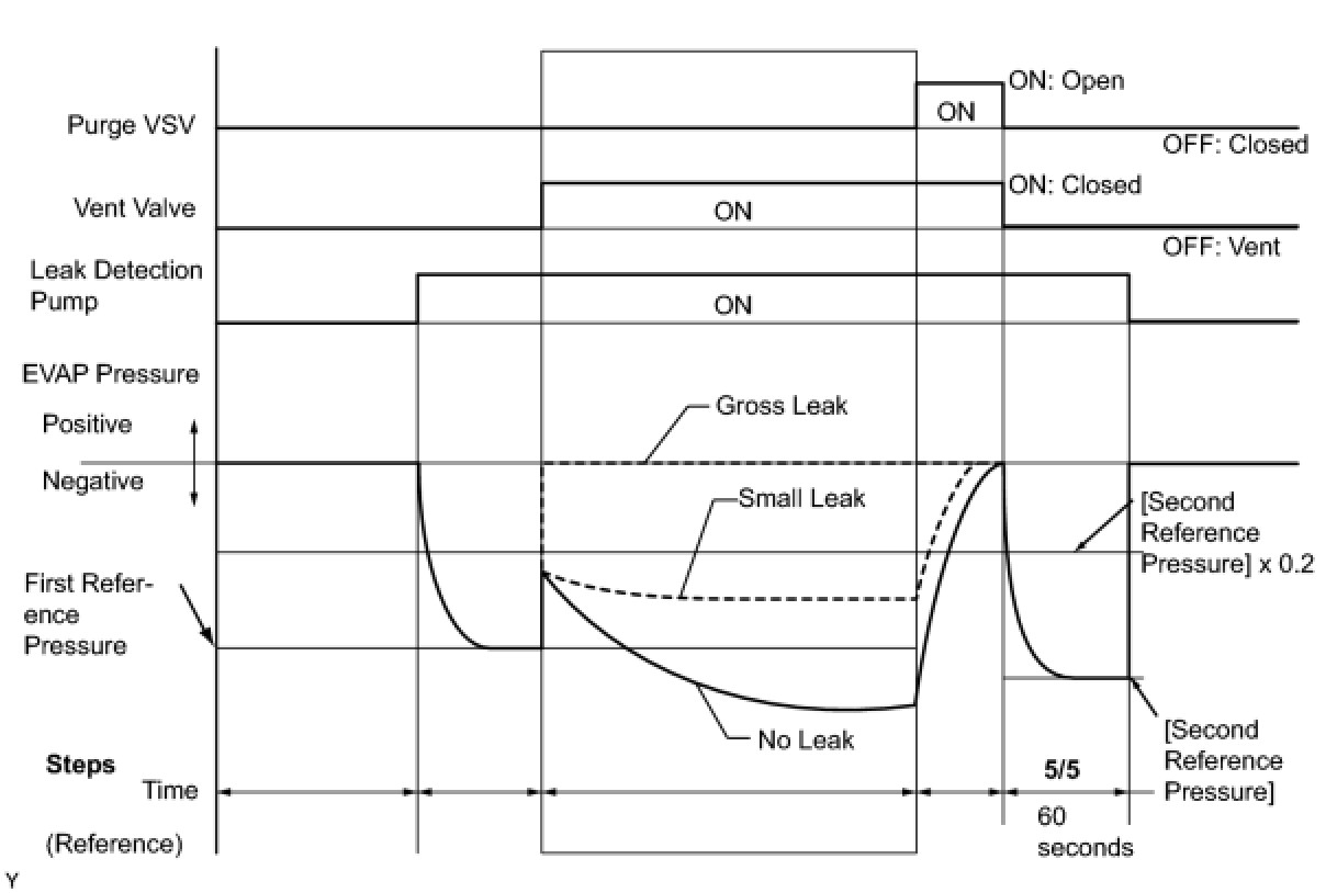 (b) Compare the EVAP pressure in step 3/5 and the second reference pressure (step 5/5).