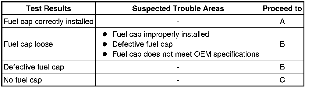 (a) Check that the fuel cap is correctly installed and confirm the fuel cap meets OEM specifications.