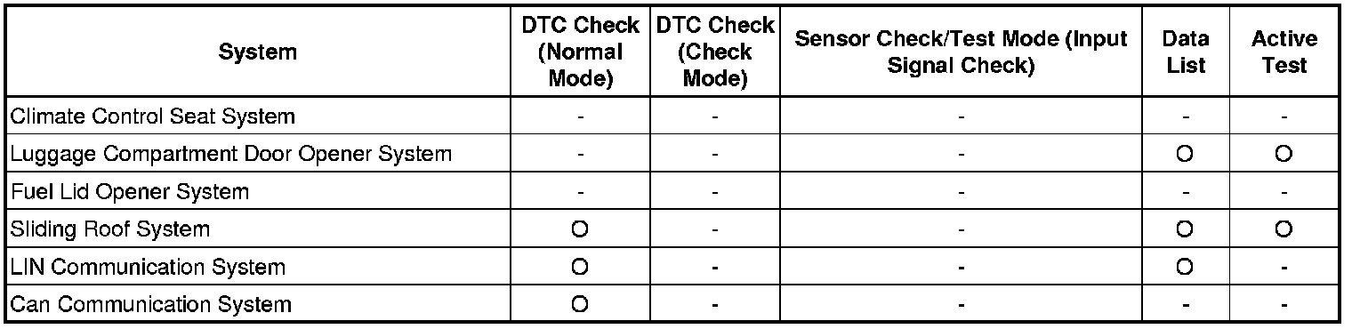 * Another function is the Input Signal Check, which checks if the signals from various switches are sent to the ECU correctly.