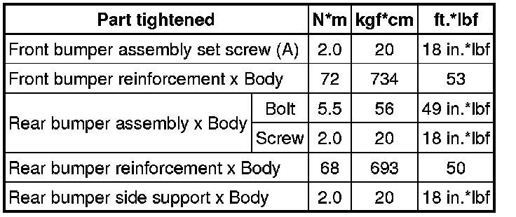 SERVICE SPECIFICATIONS: EXTERIOR: TORQUE SPECIFICATIONS