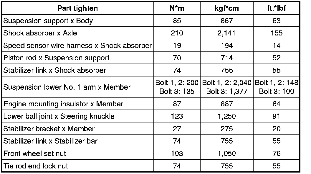 : TORQUE SPECIFICATIONS