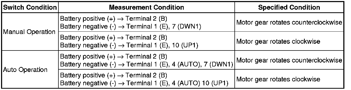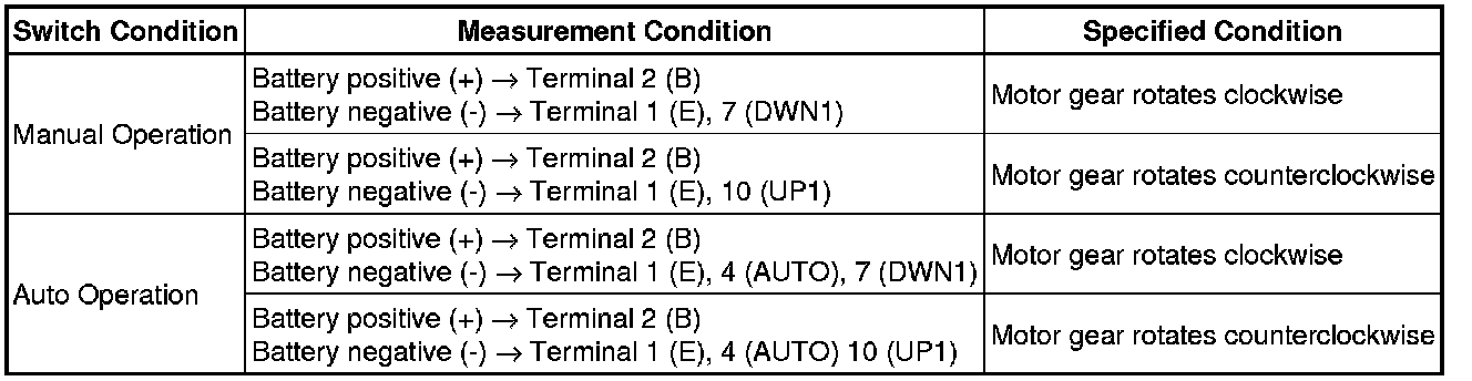 WINDSHIELD / WINDOWGLASS: POWER WINDOW REGULATOR MOTOR: INSPECTION