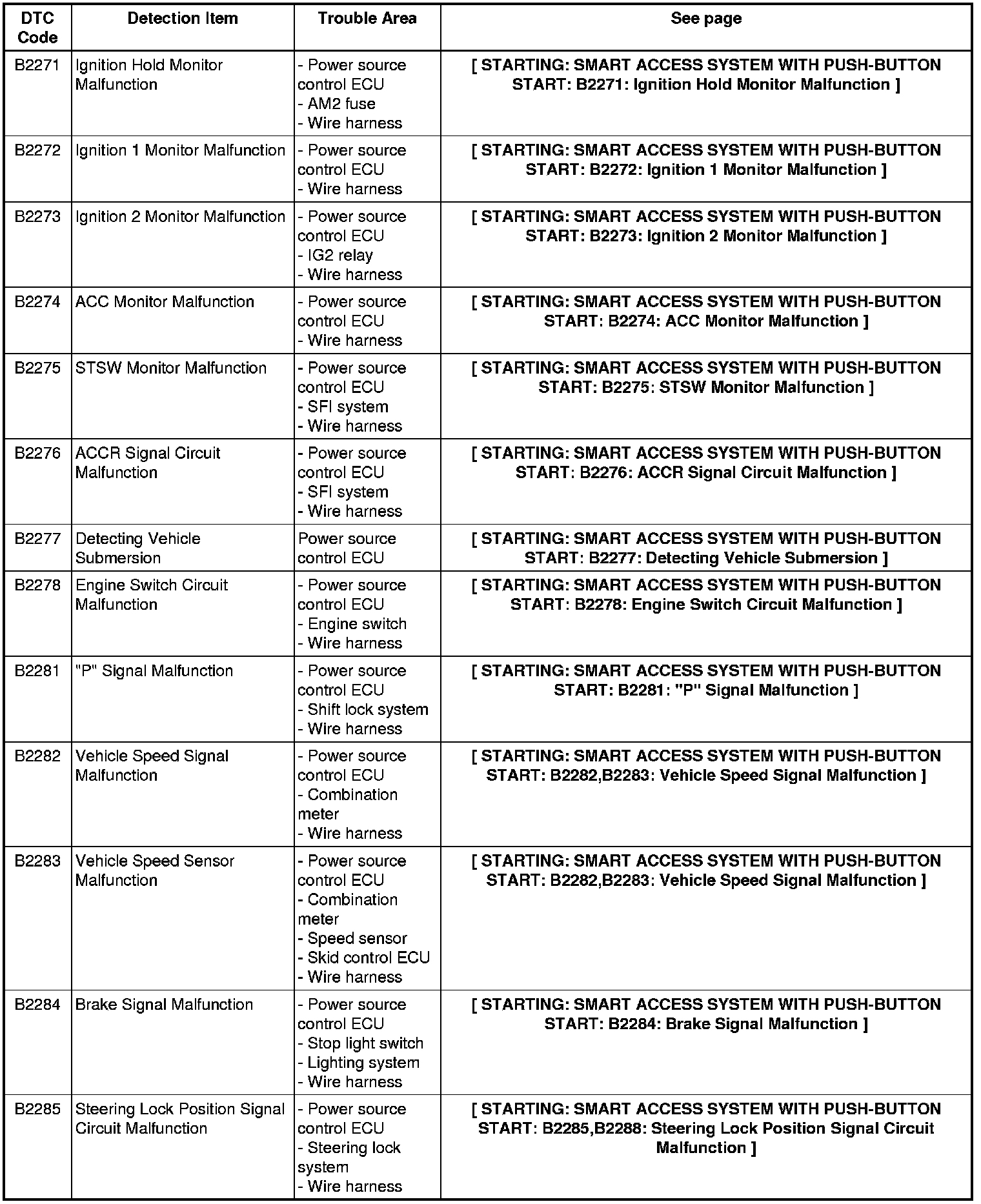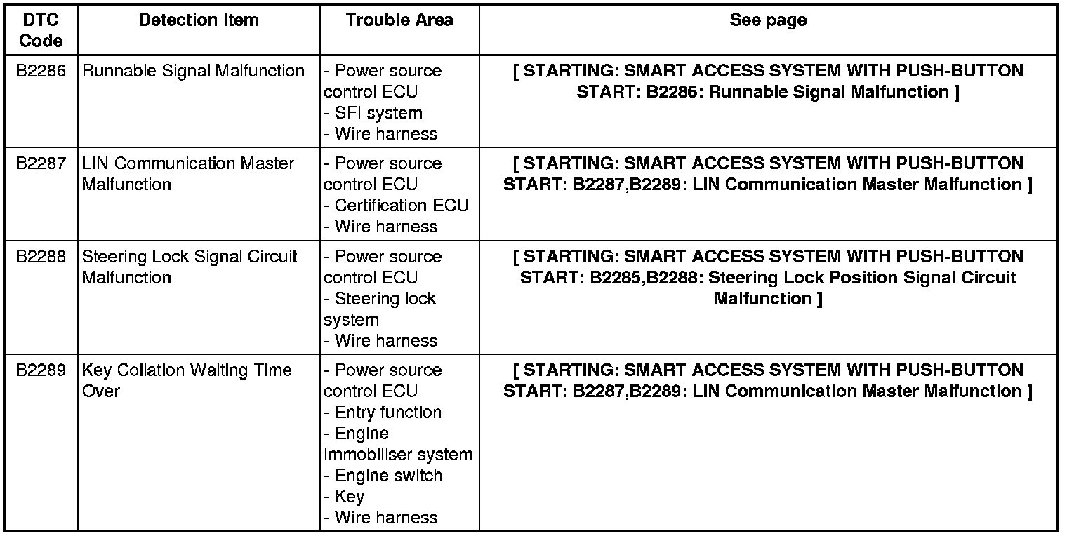 2GR-FSE STARTING: SMART ACCESS SYSTEM WITH PUSH-BUTTON START: DIAGNOSTIC TROUBLE CODE CHART