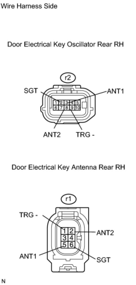 When an ID code from the door electrical key oscillator rear RH matches an ID code from the key, the multiplex network door ECU rear RH (rear door RH ECU) outputs a SEL signal (Lo when output) to the door electrical key oscillator rear RH, activates the touch sensor inside the outside door handle, and enters unlock standby mode. When the touch sensor is touched, the door electrical key oscillator rear RH sends a SENS signal (Lo when output)) to the multiplex network door ECU rear RH (rear door RH ECU) and the multiplex network door ECU rear RH (rear door RH ECU) sends an unlock signal to the rear door RH lock.