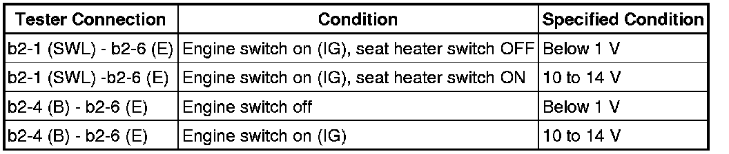 SEAT: SEAT HEATER CONTROL: ON-VEHICLE INSPECTION