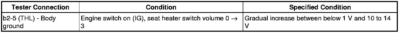 If the result is not as specified, the seat heater control may have a malfunction.