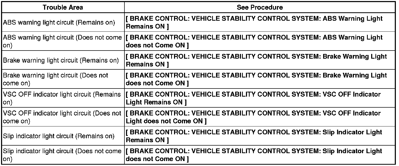 * If any of the indicators remain on or do not come on, proceed to troubleshooting for the light circuits listed below.