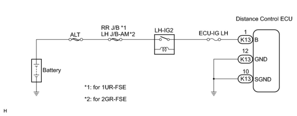 This circuit provides power to operate the distance control ECU. The distance control ECU determines information about the vehicle in front based on data from the radar sensor, and then decides how much acceleration and / or deceleration is needed to maintain the set distance. The distance control ECU also requests the skid control ECU to apply braking and sound the buzzer.