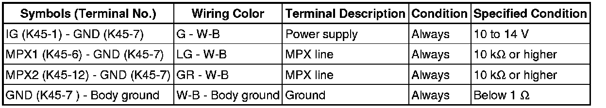 If the result is not as specified, there may be a malfunction on the wire harness side.