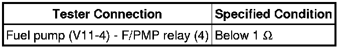 (1) Disconnect the V11 fuel pump connector.