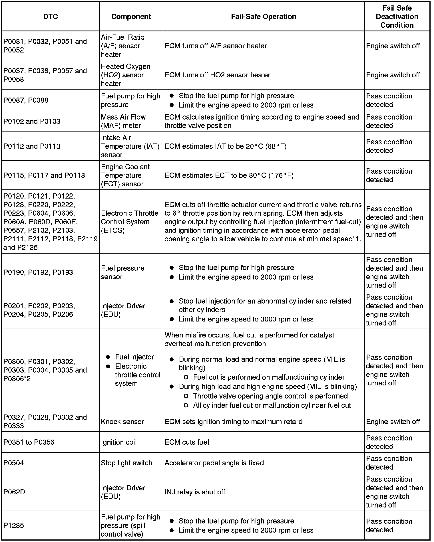 If any of the following DTCs are set, the ECM enters fail-safe mode to allow the vehicle to be driven temporarily.