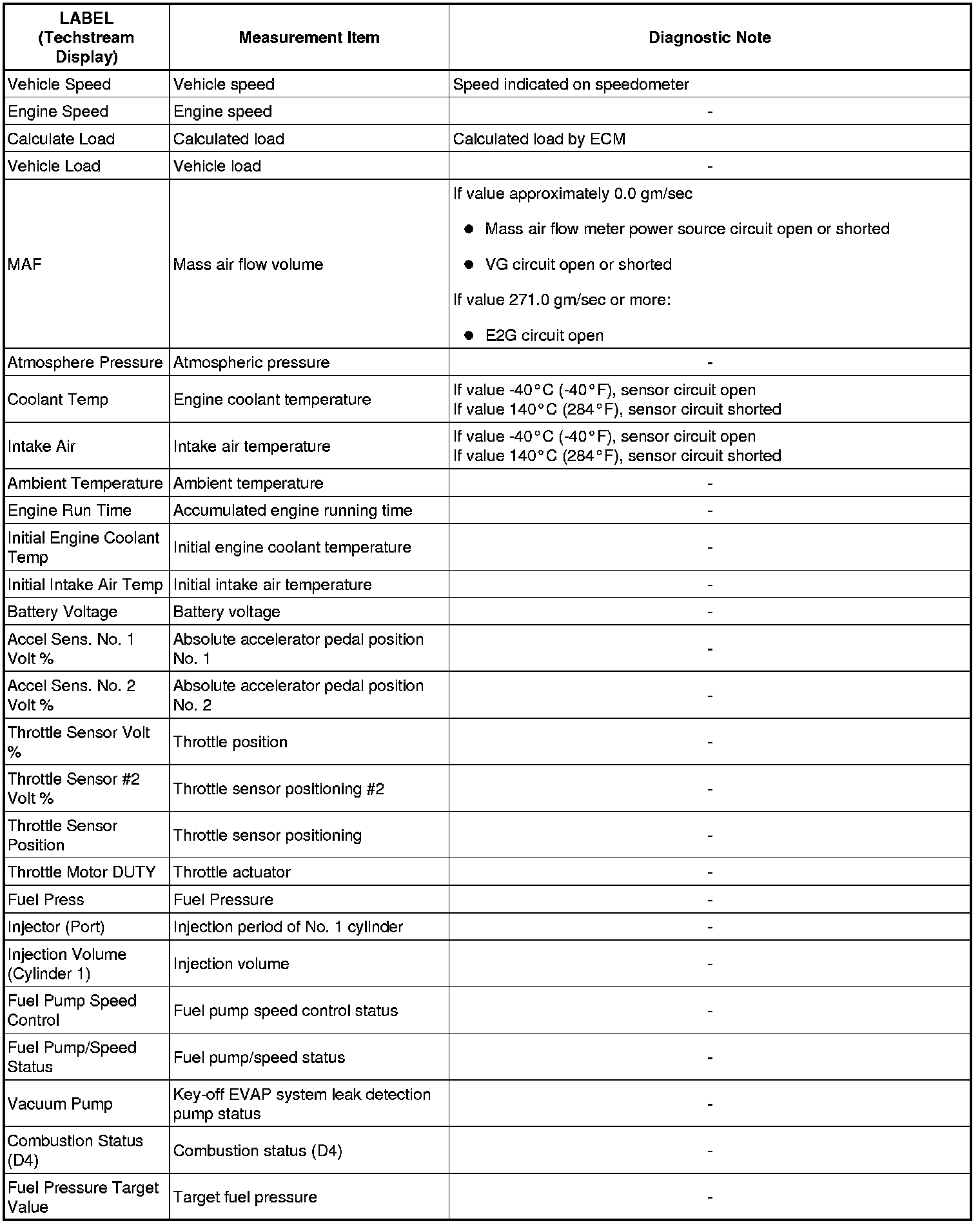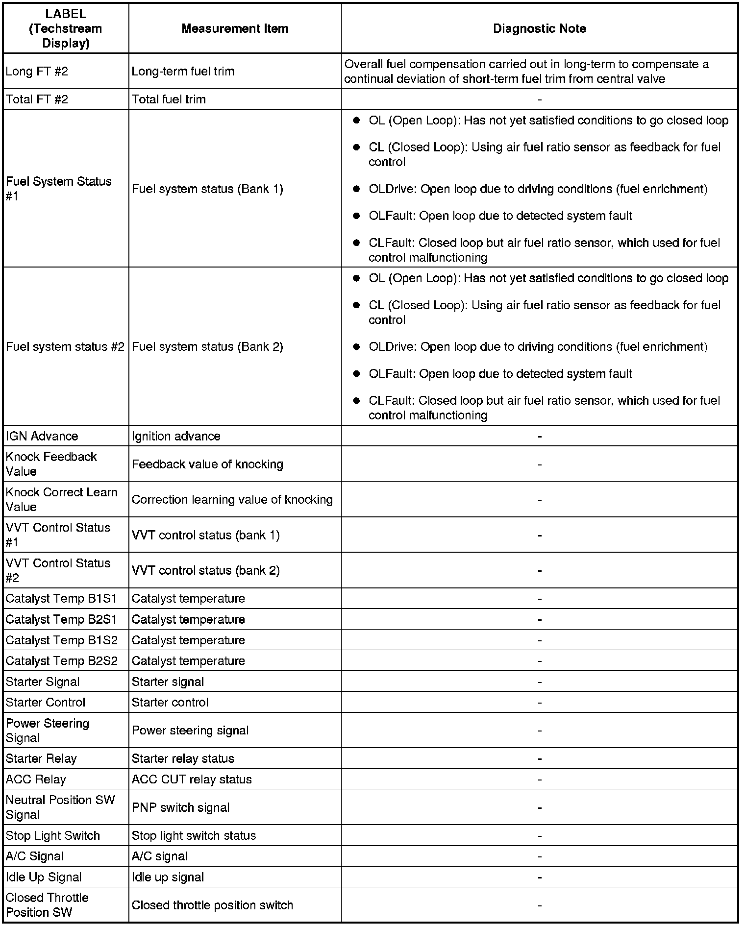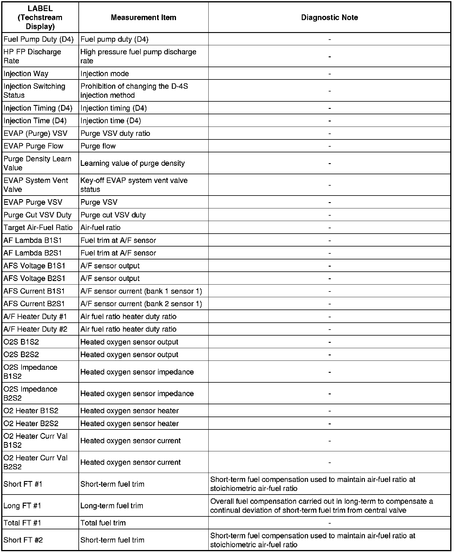 2GR-FSE ENGINE CONTROL SYSTEM: SFI SYSTEM: FREEZE FRAME DATA