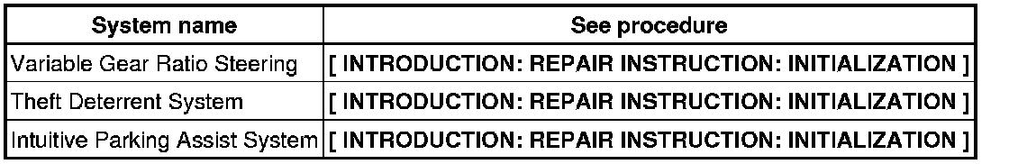 If the negative battery terminal cable has been disconnected, initialize the following systems when the cable is reconnected.