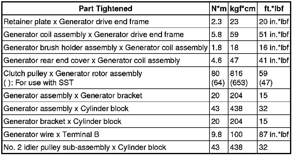 SERVICE SPECIFICATIONS: 2GR-FSE CHARGING: TORQUE SPECIFICATIONS