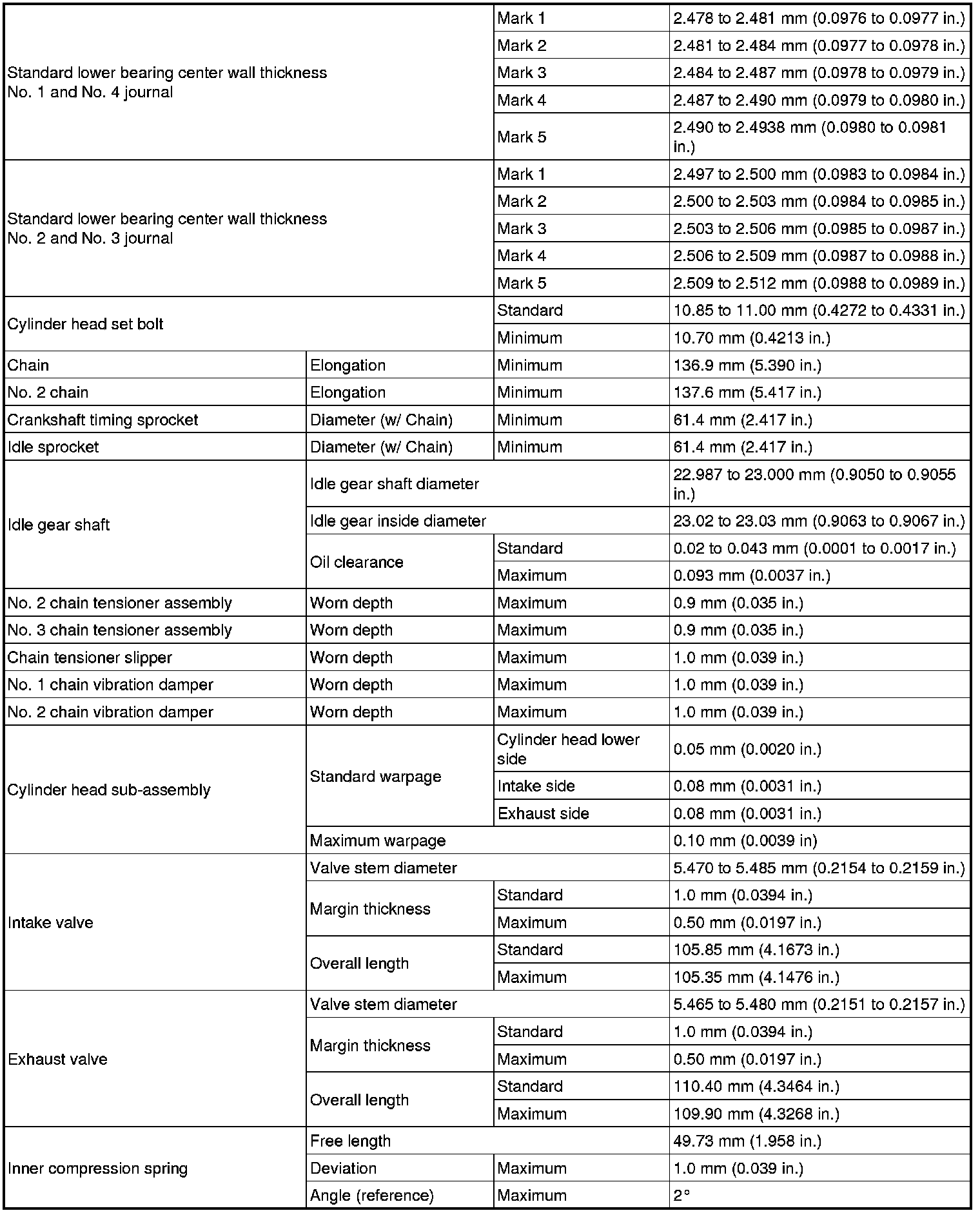 SERVICE SPECIFICATIONS: 2GR-FSE ENGINE MECHANICAL: SERVICE DATA