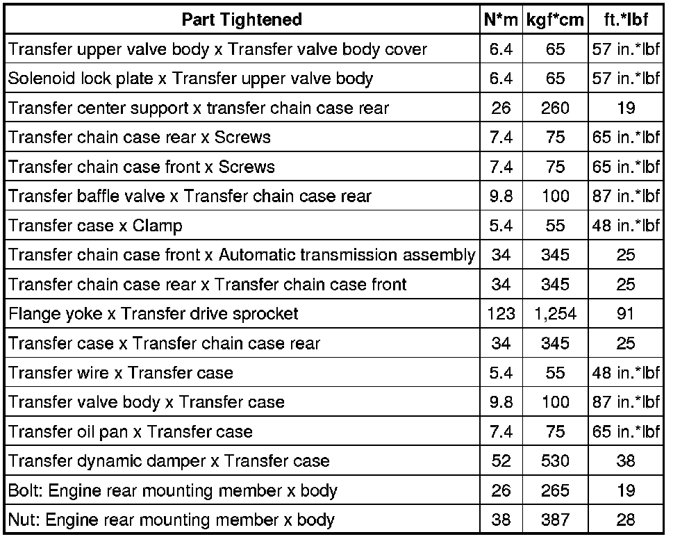 SERVICE SPECIFICATIONS: UF1AE TRANSFER: TORQUE SPECIFICATIONS