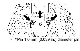 (a) While pushing the 2 brushes into the generator brush holder assembly, insert a 1.0 mm (0.039 in.) diameter pin into the brush holder hole.
