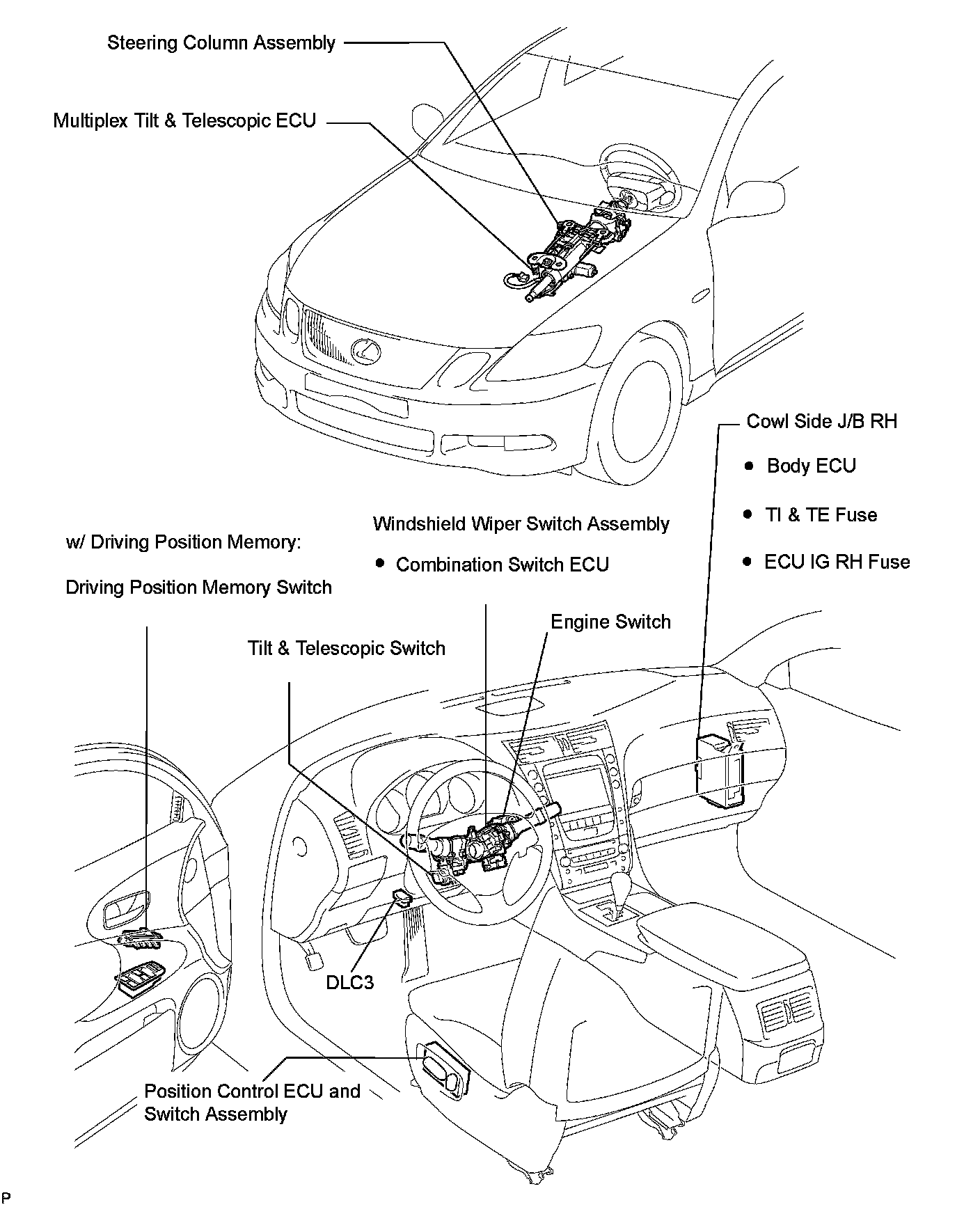 STEERING COLUMN: POWER TILT AND POWER TELESCOPIC STEERING COLUMN SYSTEM: PARTS LOCATION