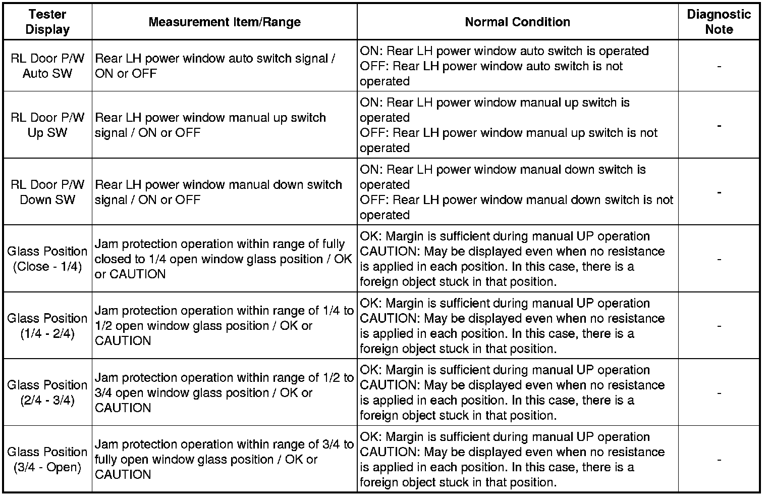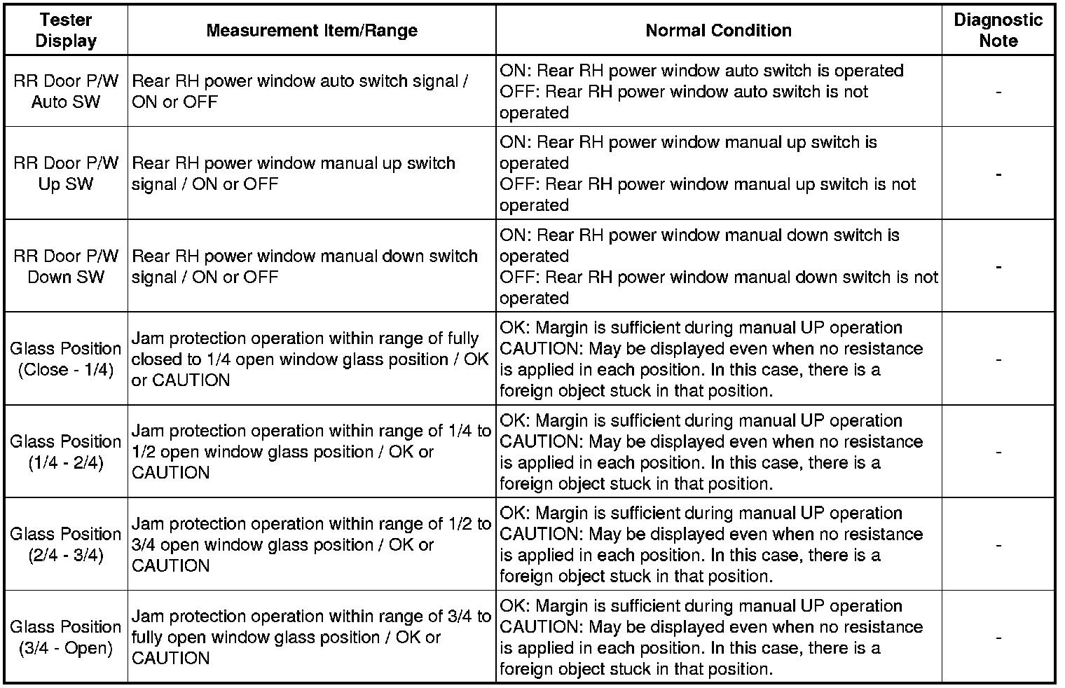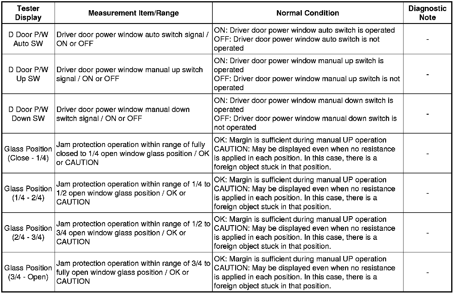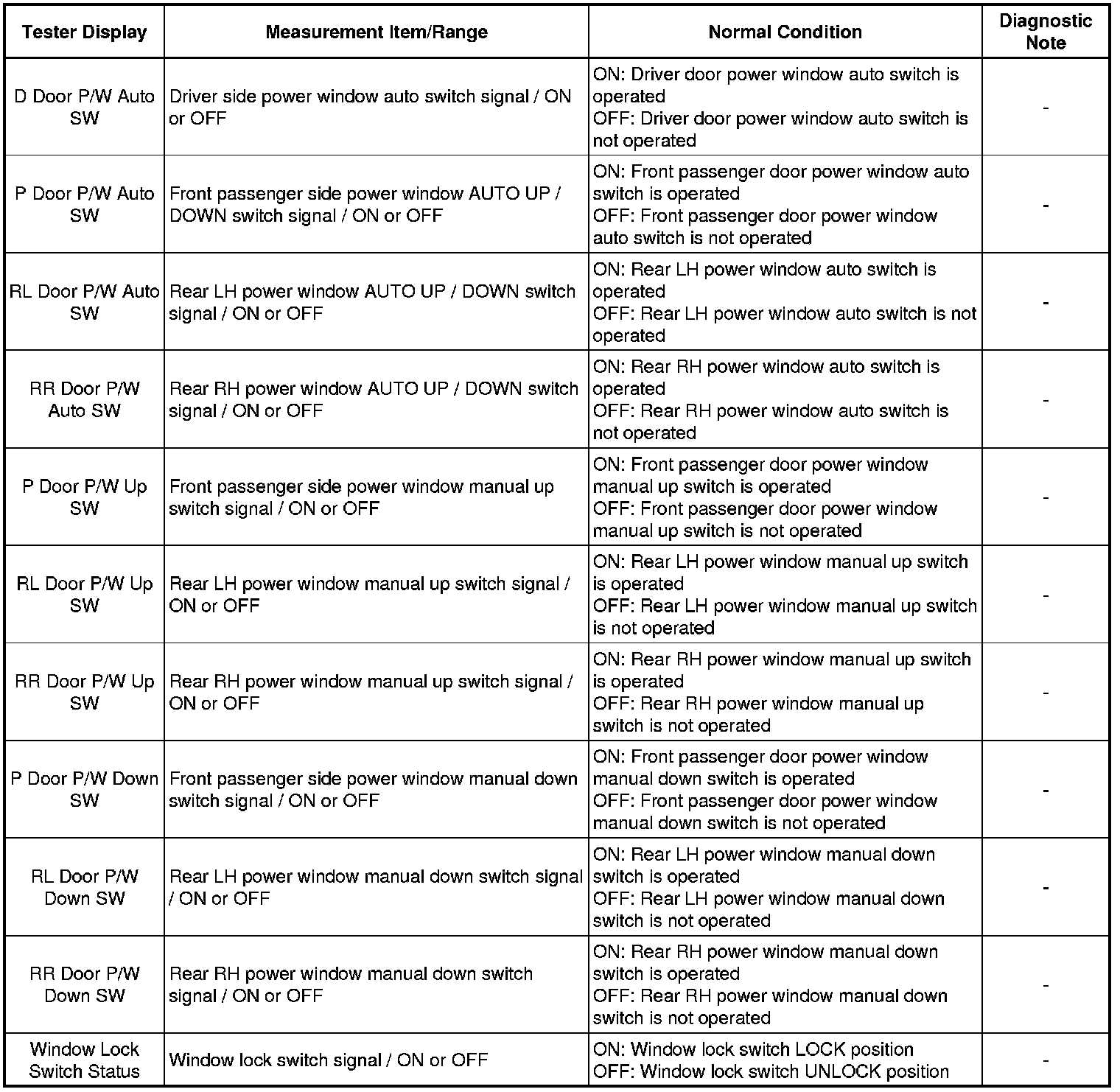 WINDSHIELD / WINDOWGLASS: POWER WINDOW CONTROL SYSTEM: DATA LIST / ACTIVE TEST