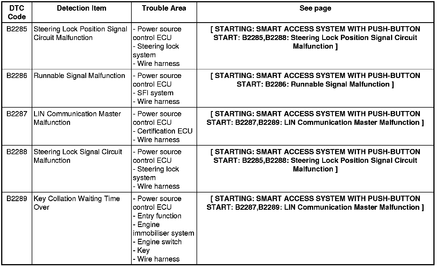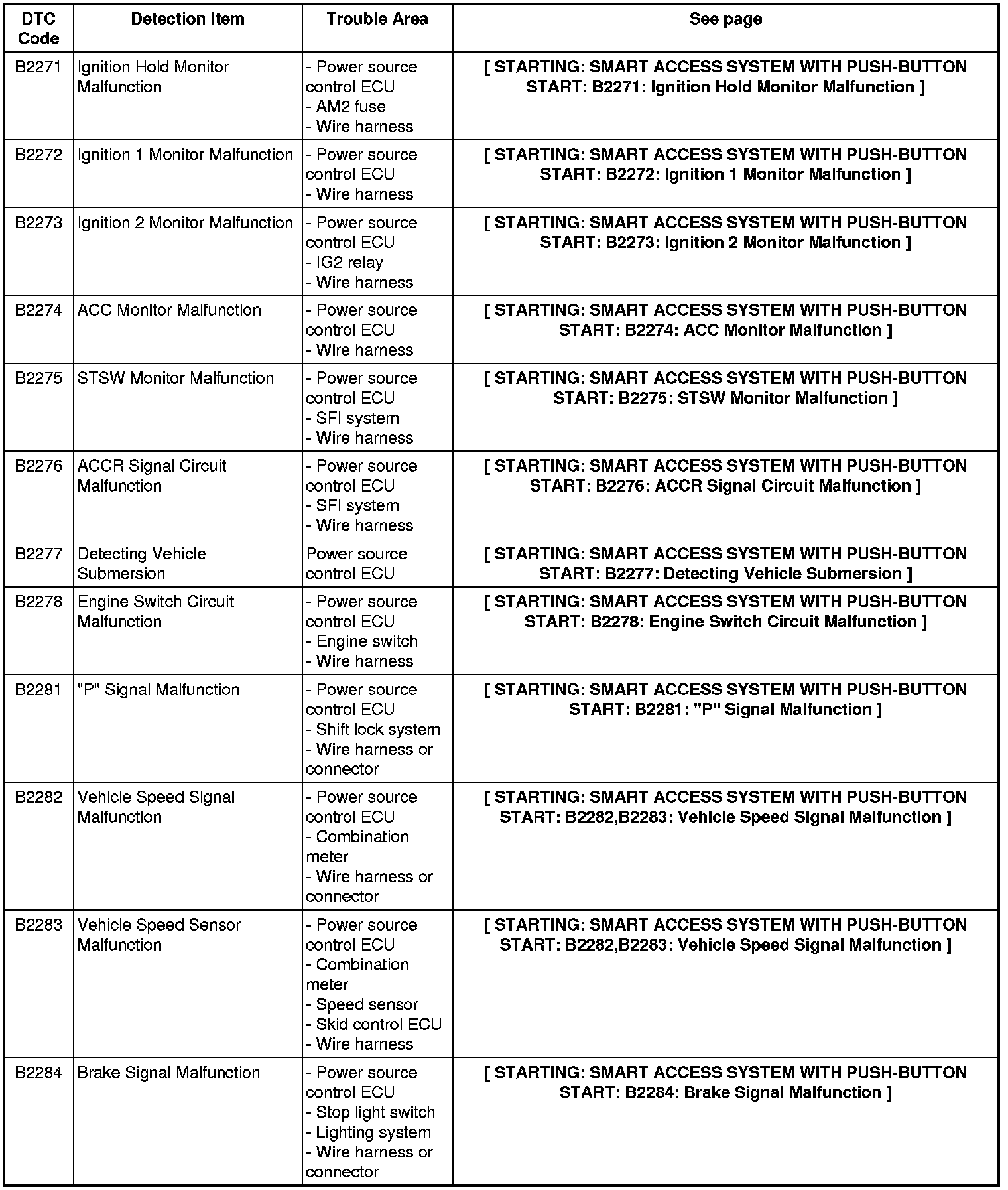 1UR-FSE STARTING: SMART ACCESS SYSTEM WITH PUSH-BUTTON START: DIAGNOSTIC TROUBLE CODE CHART