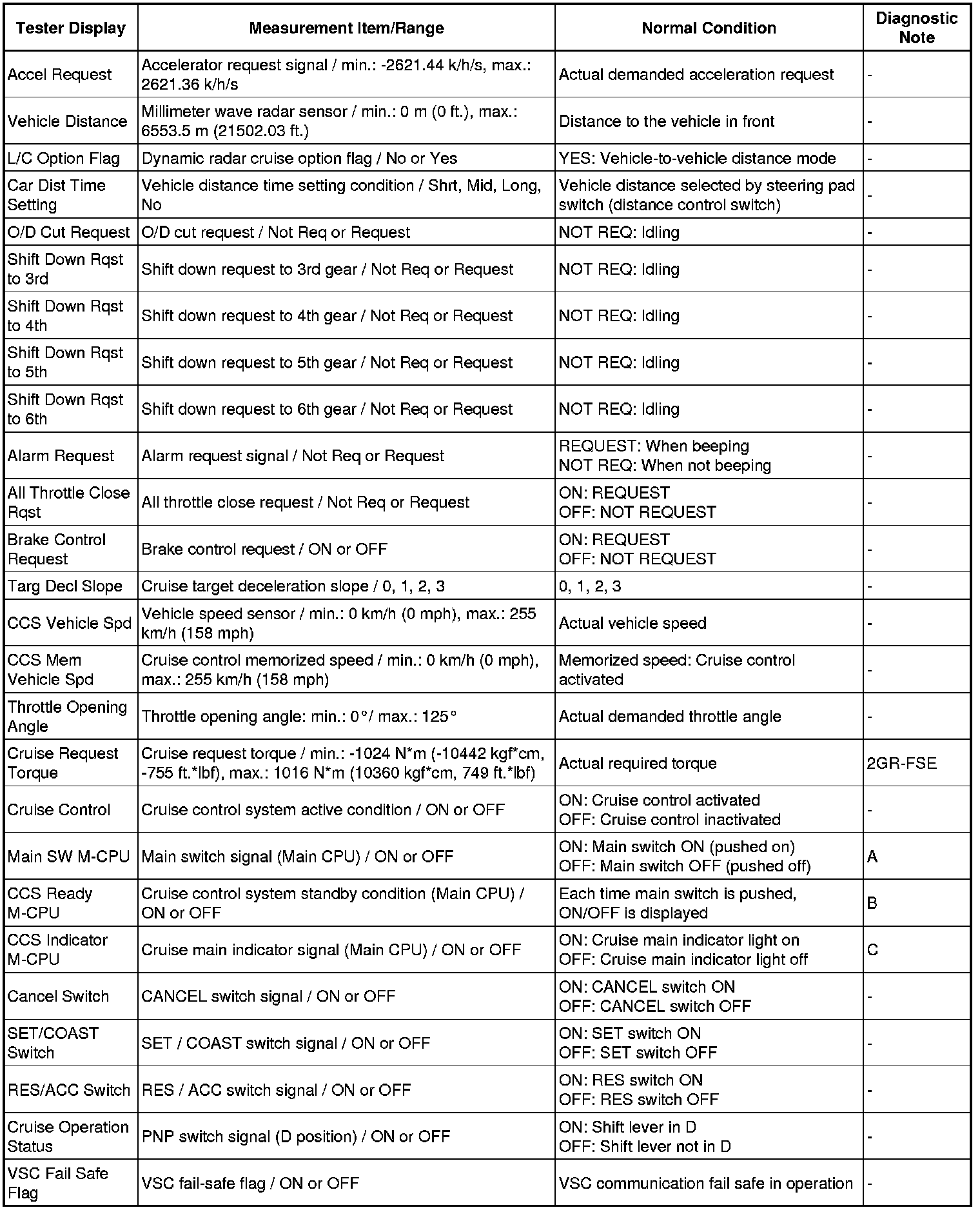 CRUISE CONTROL: DYNAMIC RADAR CRUISE CONTROL SYSTEM: DATA LIST / ACTIVE TEST