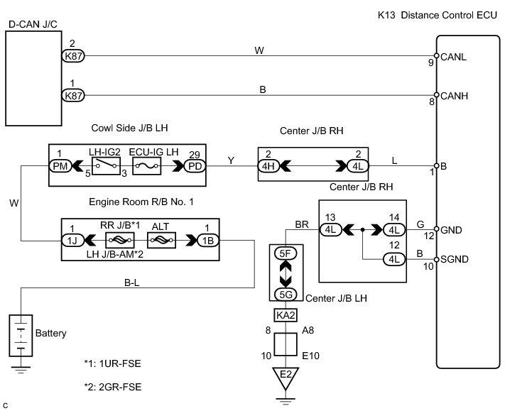 1. CHECK CAN BUS LINE FOR DISCONNECTION (DISTANCE CONTROL ECU SUB BUS LINE)