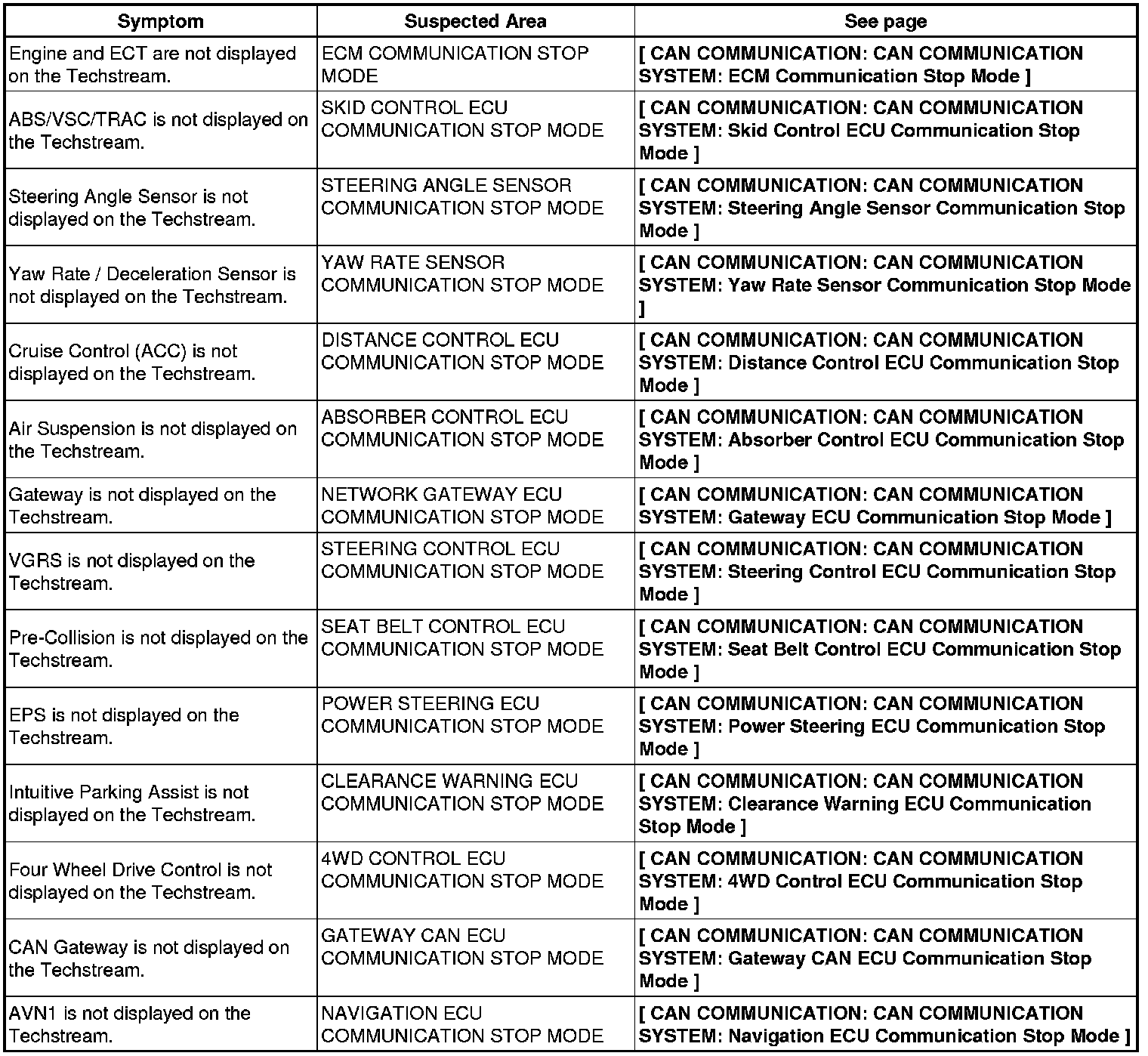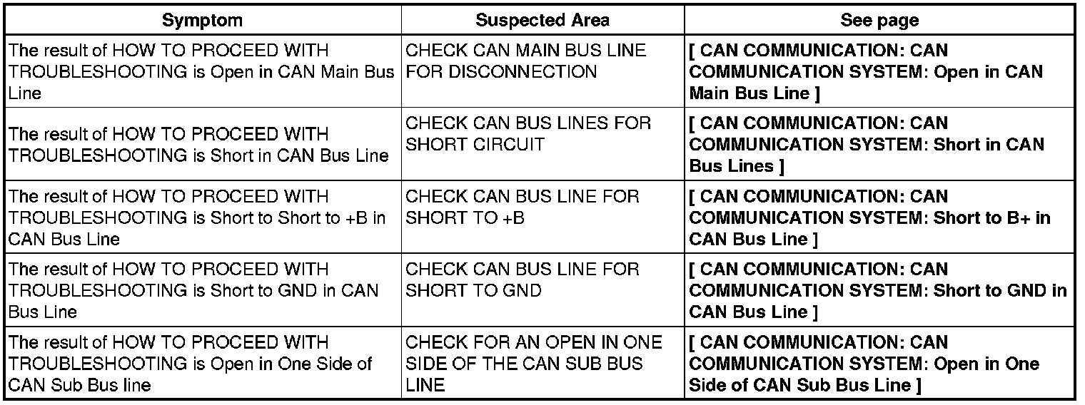 CAN COMMUNICATION: CAN COMMUNICATION SYSTEM: PROBLEM SYMPTOMS TABLE
