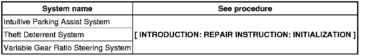 * When the cable is disconnected from the negative (-) battery terminal, initialize the following system(s) after the cable is reconnected.