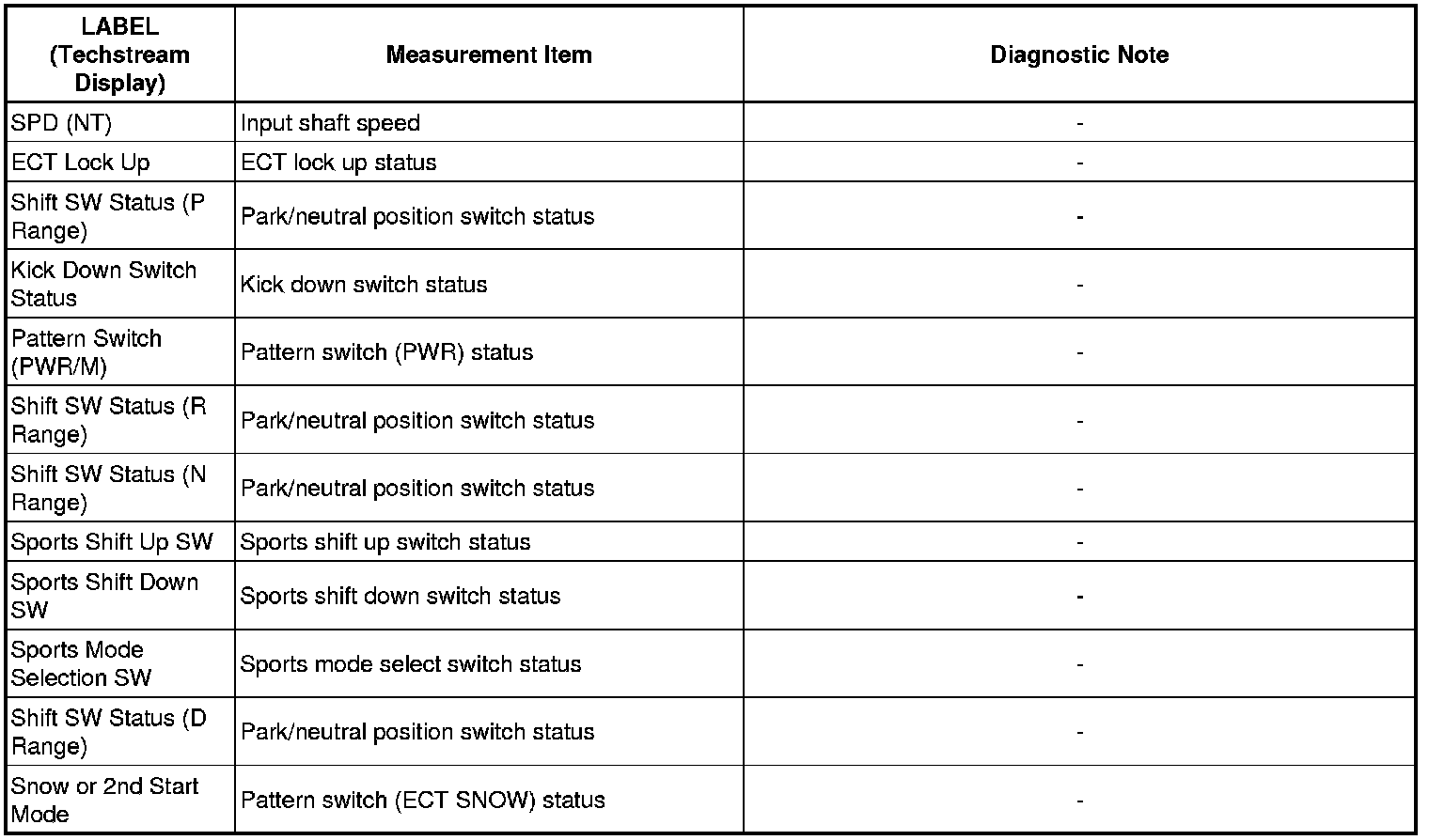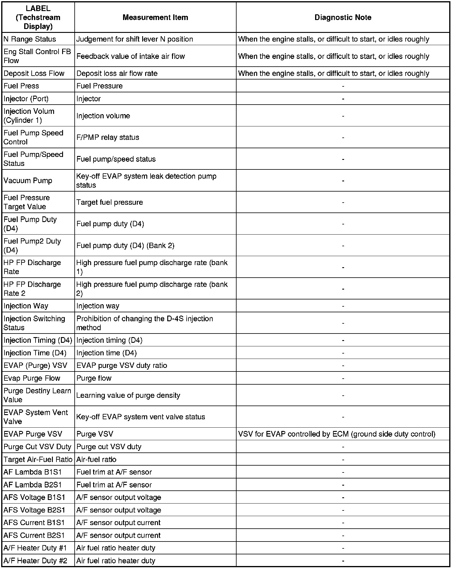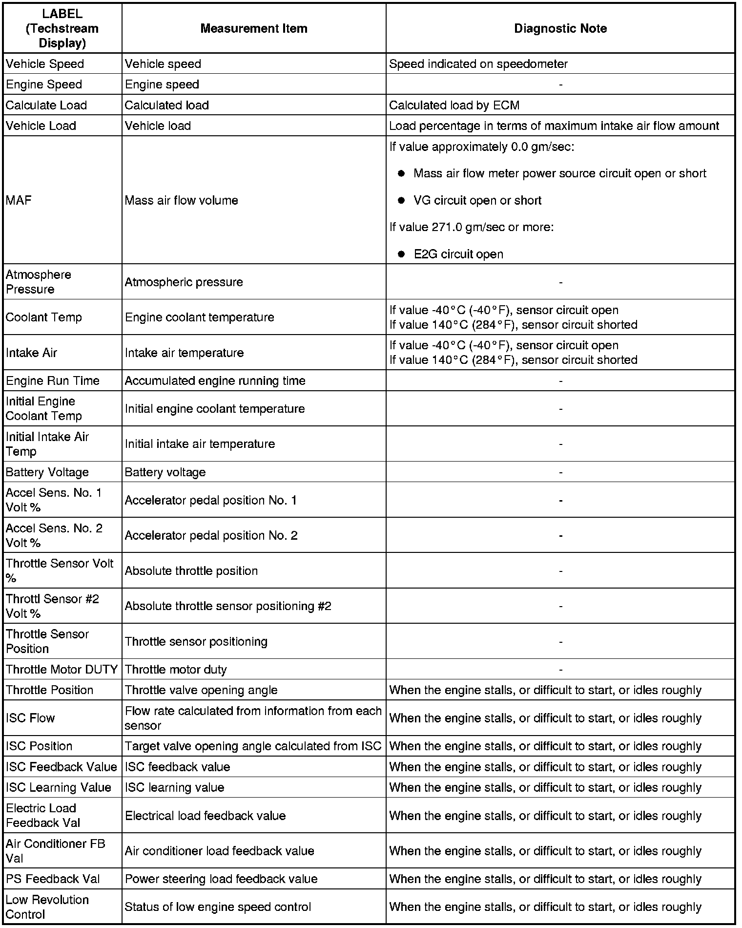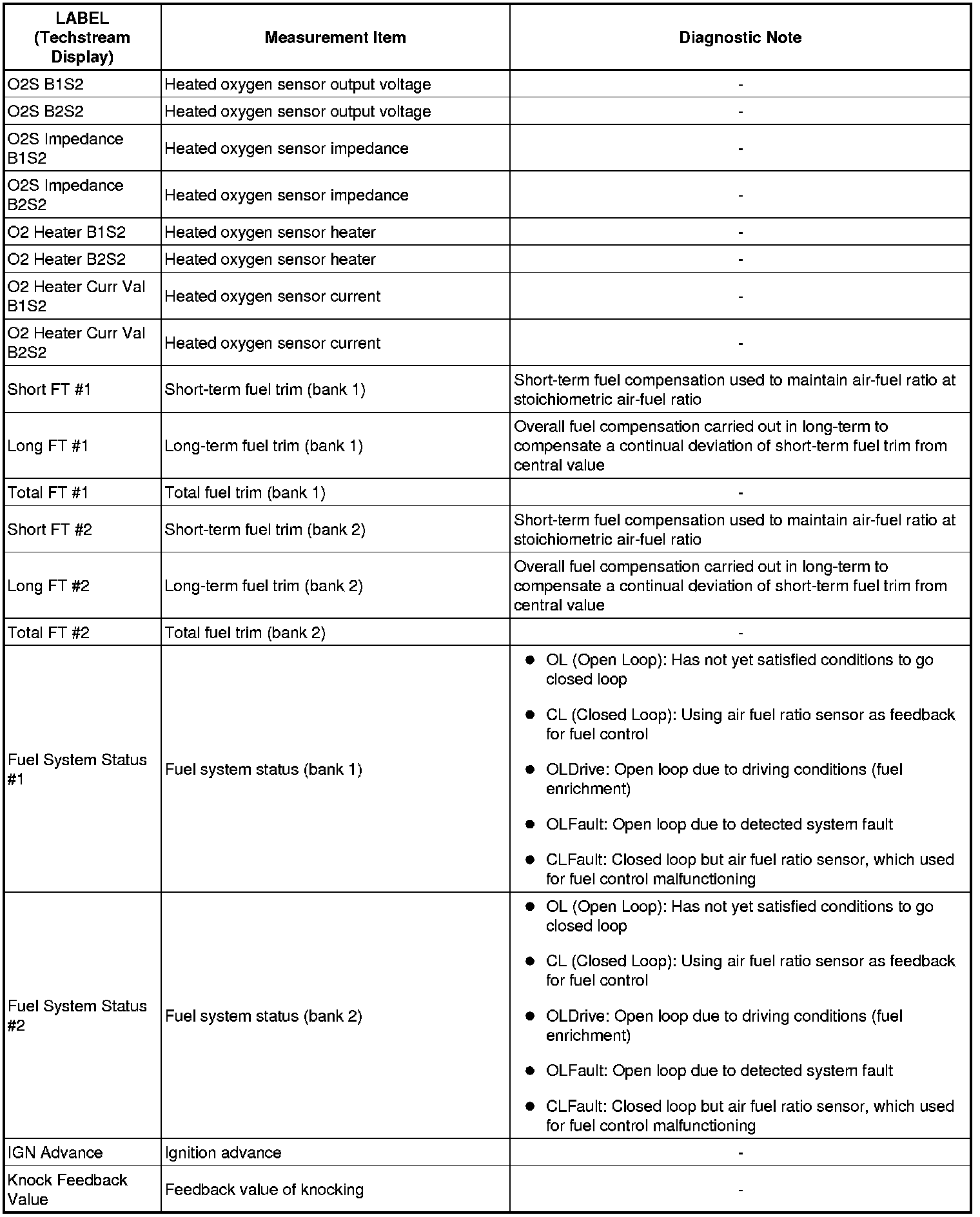 The ECM records vehicle and driving condition information as freeze frame data the moment a DTC is stored. When troubleshooting, freeze frame data can be helpful in determining whether the vehicle was running or stopped, whether the engine was warmed up or not, whether the air-fuel ratio was lean or rich, as well as other data recorded at the time of a malfunction.