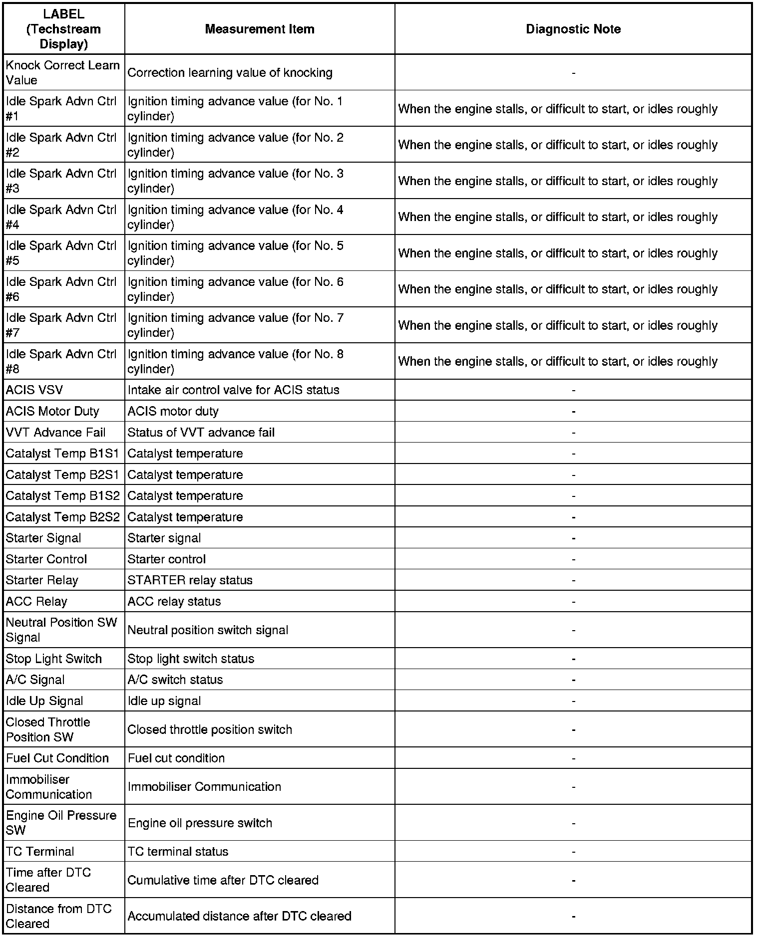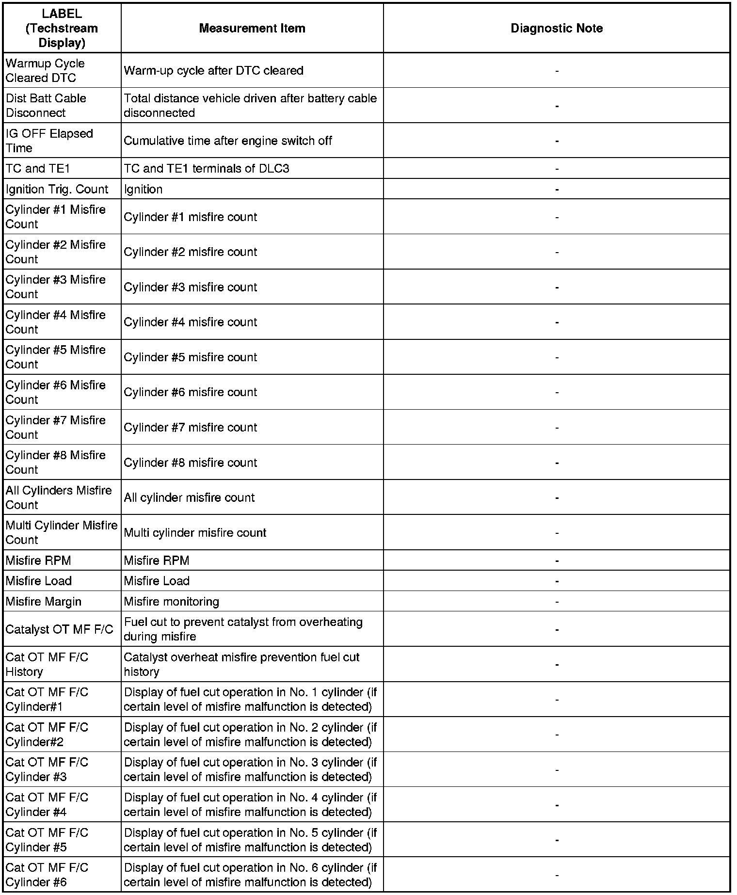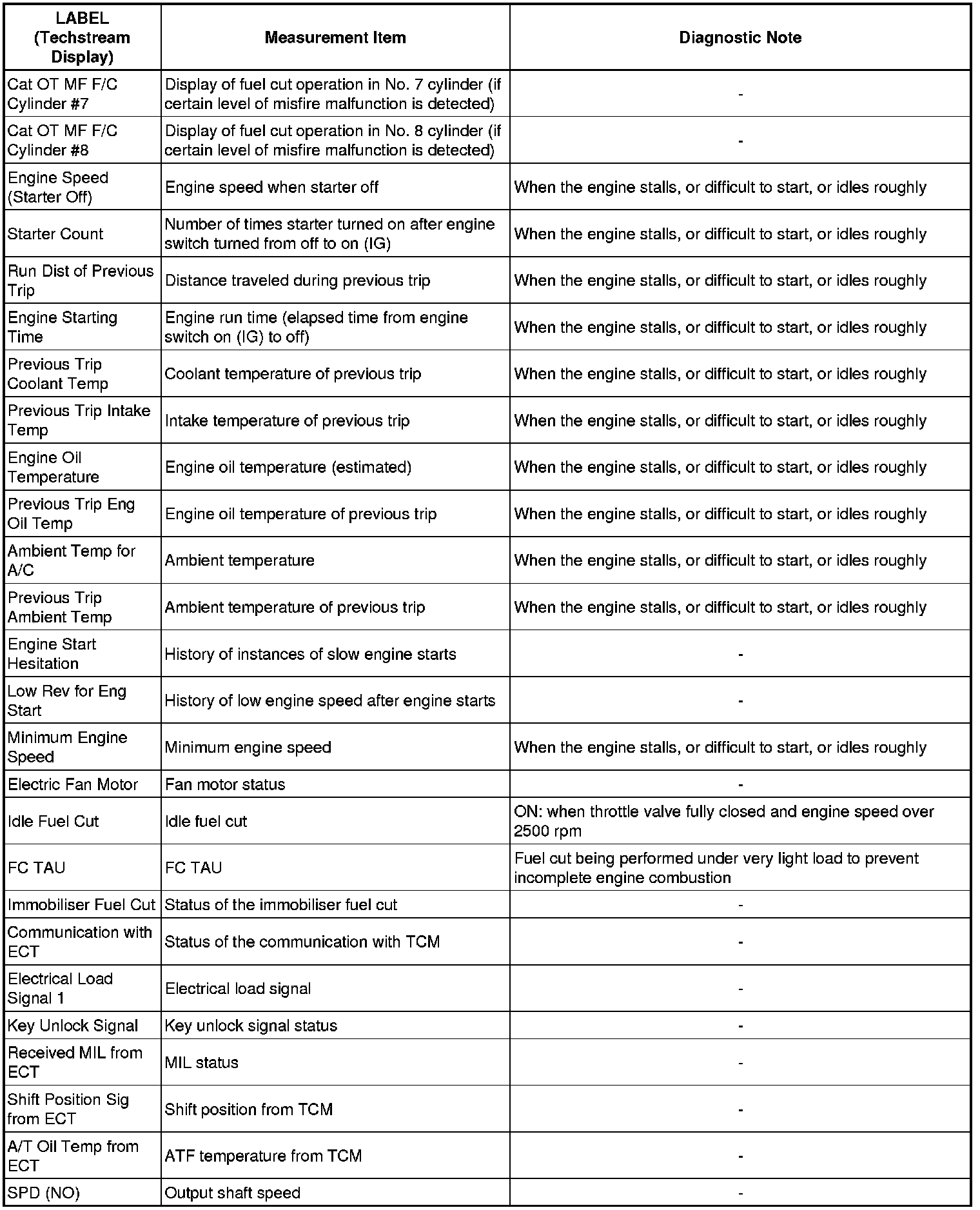* These data sets can be used to duplicate the condition of the vehicle around the time of the occurrence of the malfunction. The data may assist in identifying of the cause of the malfunction, and in judging whether it was temporary or not.