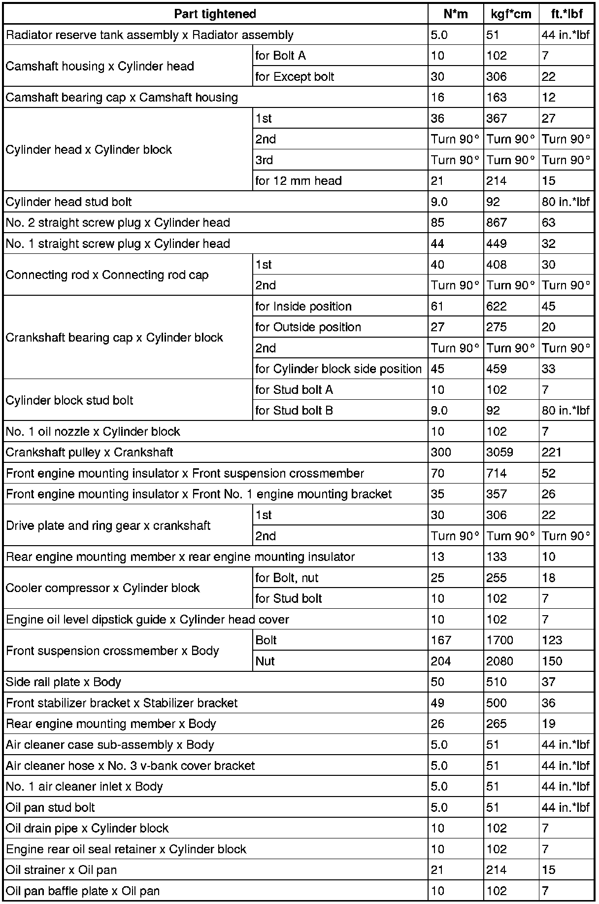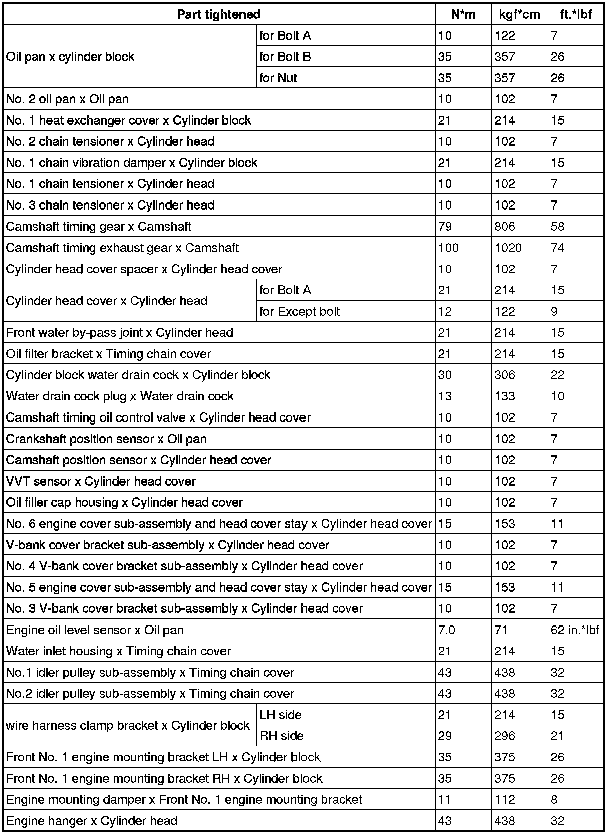 SERVICE SPECIFICATIONS: 1UR-FSE ENGINE MECHANICAL: TORQUE SPECIFICATIONS