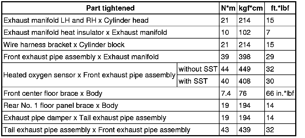 SERVICE SPECIFICATIONS: 1UR-FSE EXHAUST: TORQUE SPECIFICATIONS