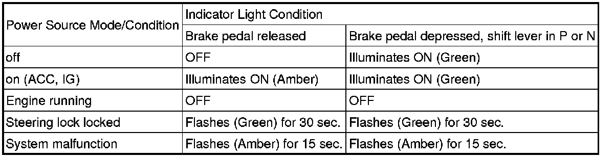 The amber and green LEDs are for the indicator lights. The driver can check the present power source mode and whether the engine can start or not in accordance with the illumination state of the indicator light.