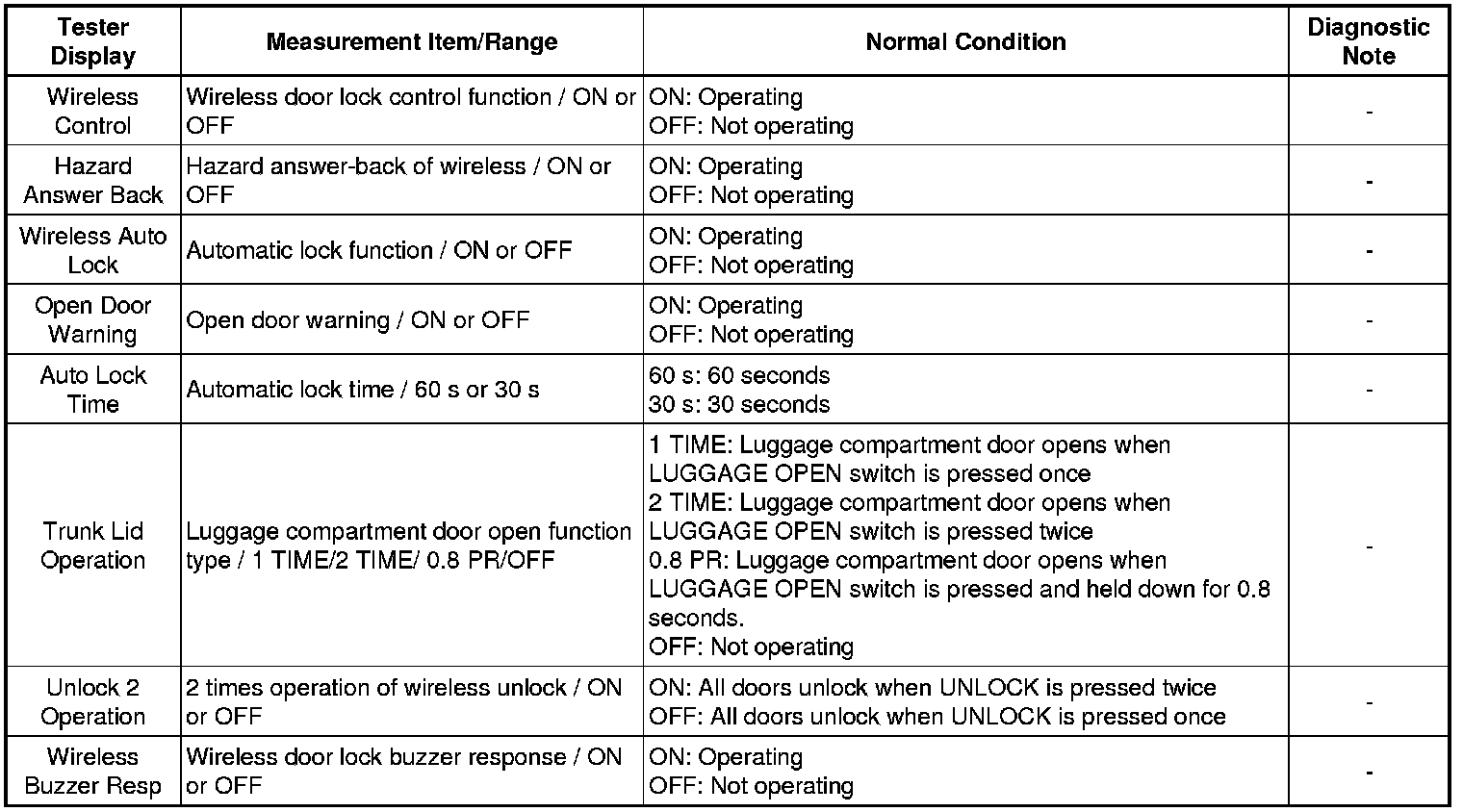 DOOR LOCK: WIRELESS DOOR LOCK CONTROL SYSTEM: DATA LIST / ACTIVE TEST