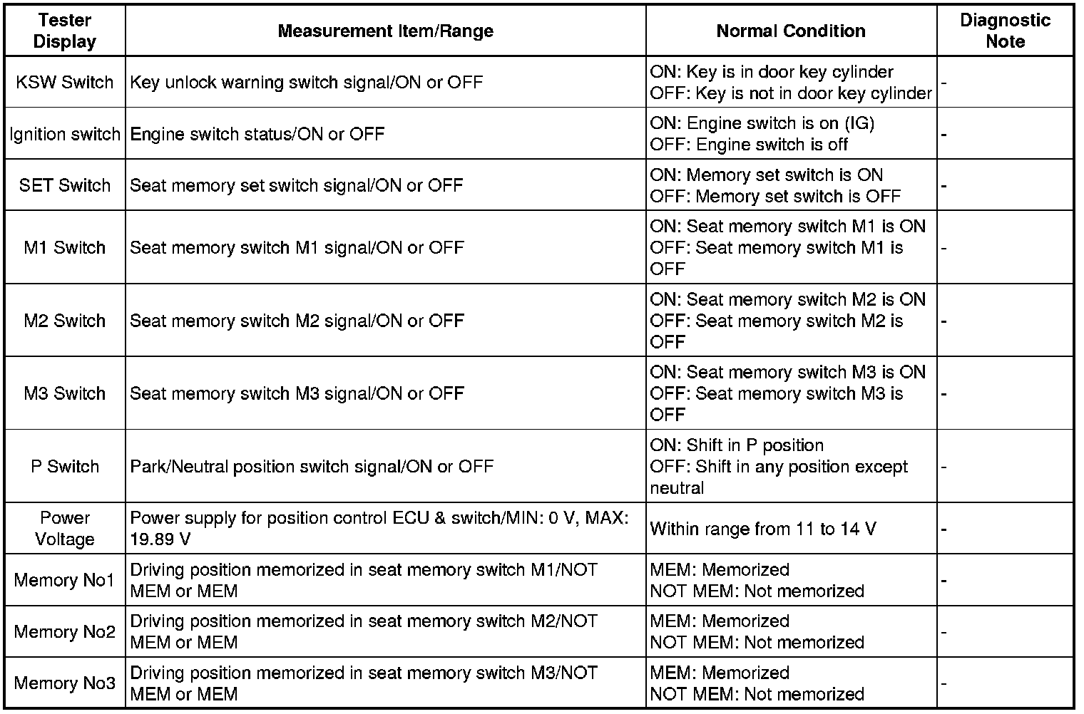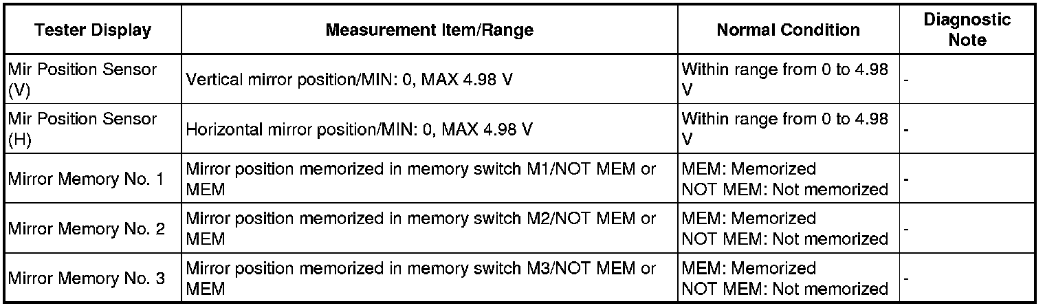 MIRROR: POWER MIRROR CONTROL SYSTEM (w/ Memory): DATA LIST / ACTIVE TEST