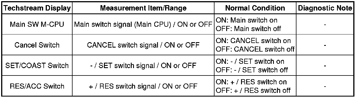 CRUISE CONTROL: CRUISE CONTROL SYSTEM: Cruise Control Switch Circuit