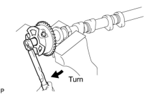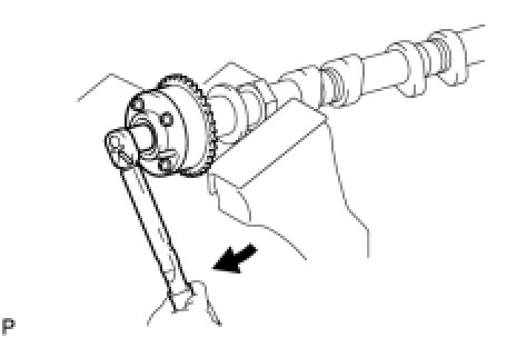 (1) Clamp the camshaft in a vise, and confirm that the camshaft timing gear is locked.