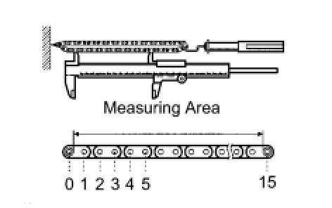 (b) Using vernier calipers, measure the length of 15 links.