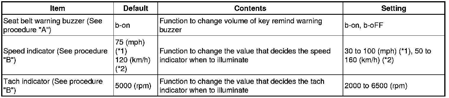(b) Seat Belt Buzzer ON/OFF setting (Procedure "A")