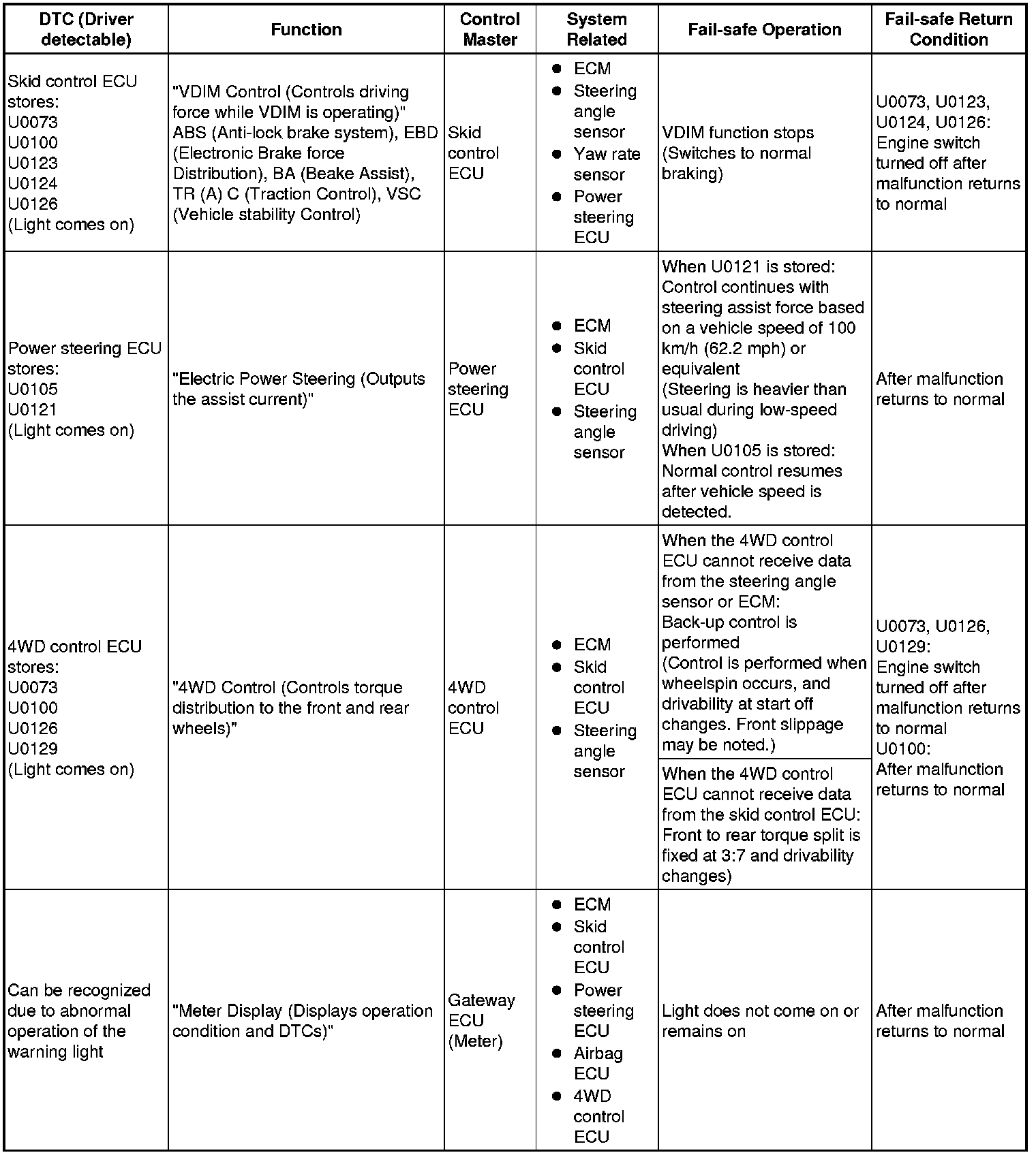 CAN COMMUNICATION: CAN COMMUNICATION SYSTEM: FAIL-SAFE CHART