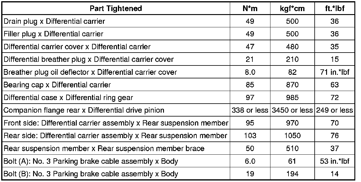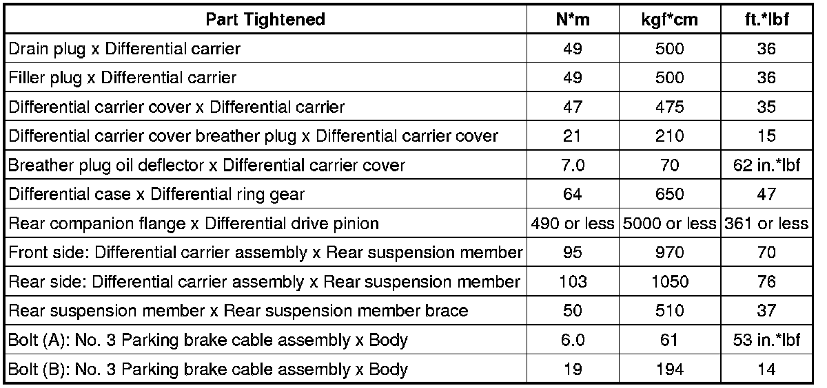 SERVICE SPECIFICATIONS: DIFFERENTIAL: TORQUE SPECIFICATIONS
